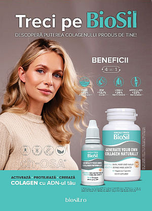 Prin urmare, imbatranirea este un proces natural, dar asta nu inseamna ca nu putem avea grija de pielea noastra, de par, unghii si articulatii. Cu BioSil, colagenul natural revine in prim-plan, iar tu poti sa te bucuri de o piele mai tanara, mai ferma si mai radianta. Este o investitie in frumusetea ta – una care incepe din interior.